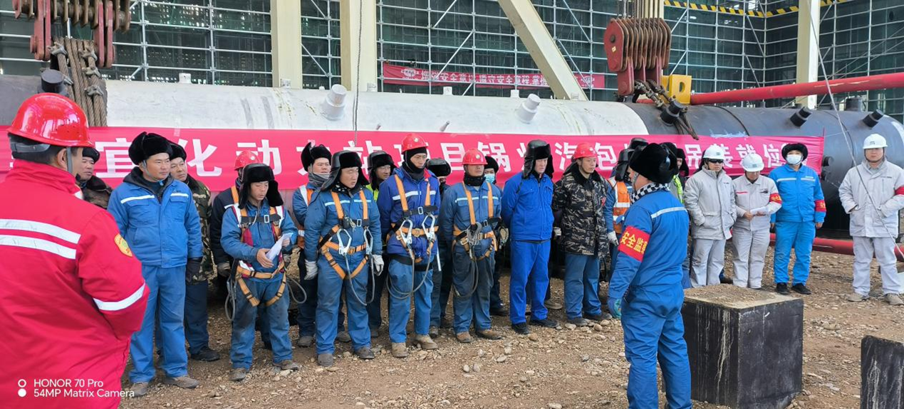 2023年11月22日,迪爾集團有限公司第二公司新疆宜化化工項目鍋爐汽包在項目部全體成員的共同努力下順利吊裝就位!