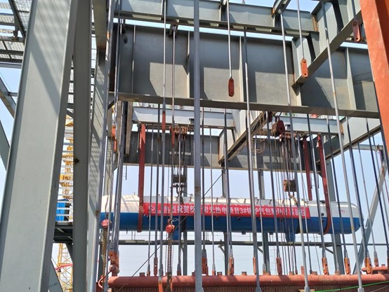 新沂市陽(yáng)光熱電主廠(chǎng)房喜封金頂、3#鍋爐汽包一次順利吊裝就位