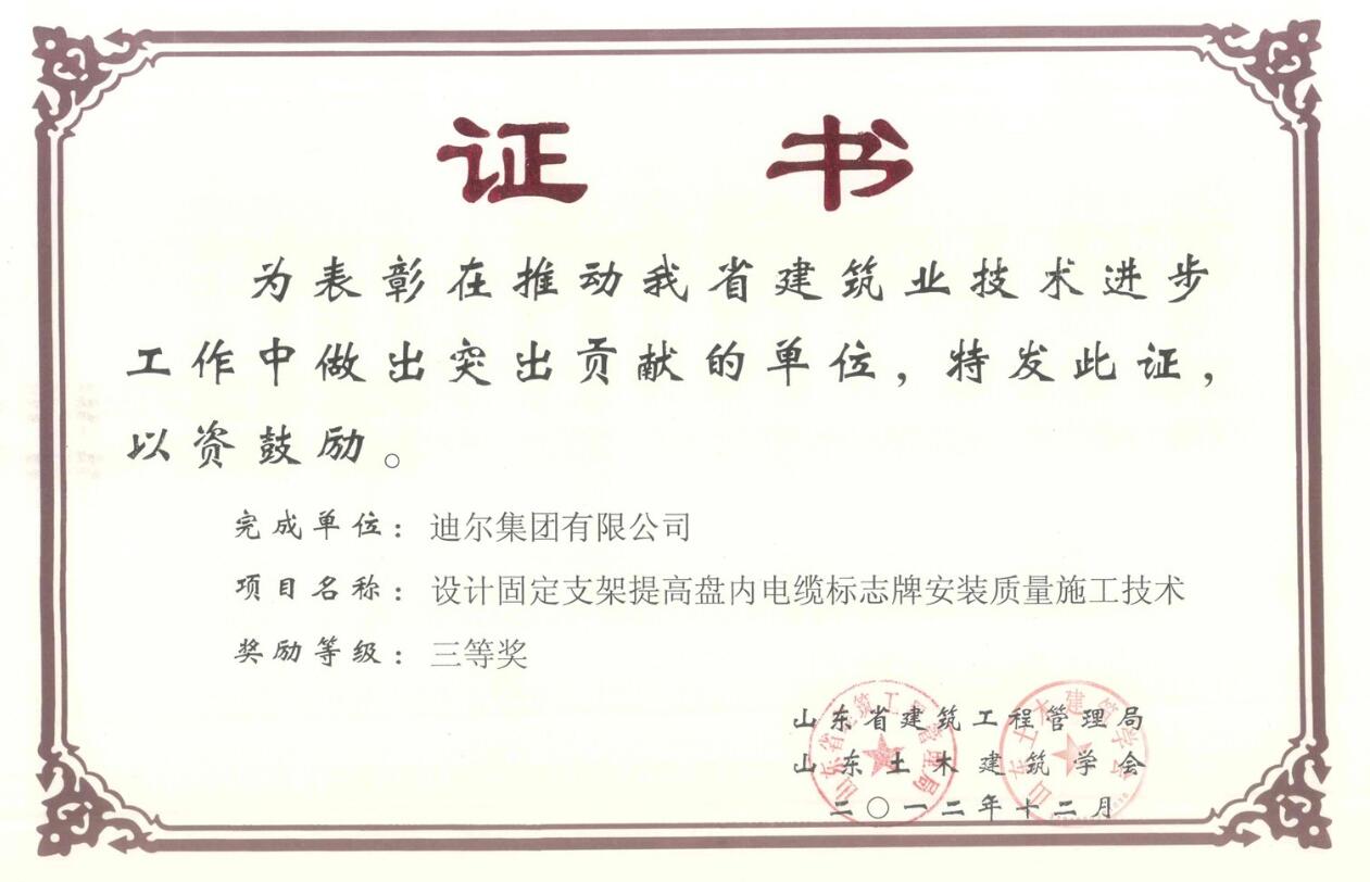 公司榮獲山東省省級“設計固定支架提高盤(pán)內電纜標志牌安裝質(zhì)量施工技術(shù)”