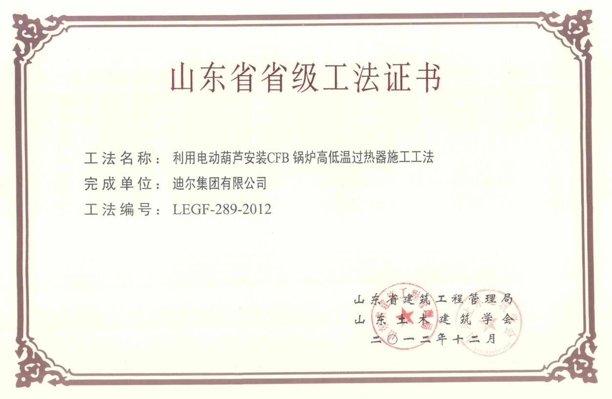 公司榮獲山東省省級“利用電動(dòng)葫蘆安裝CFB鍋爐高低溫過(guò)熱器施工工法”