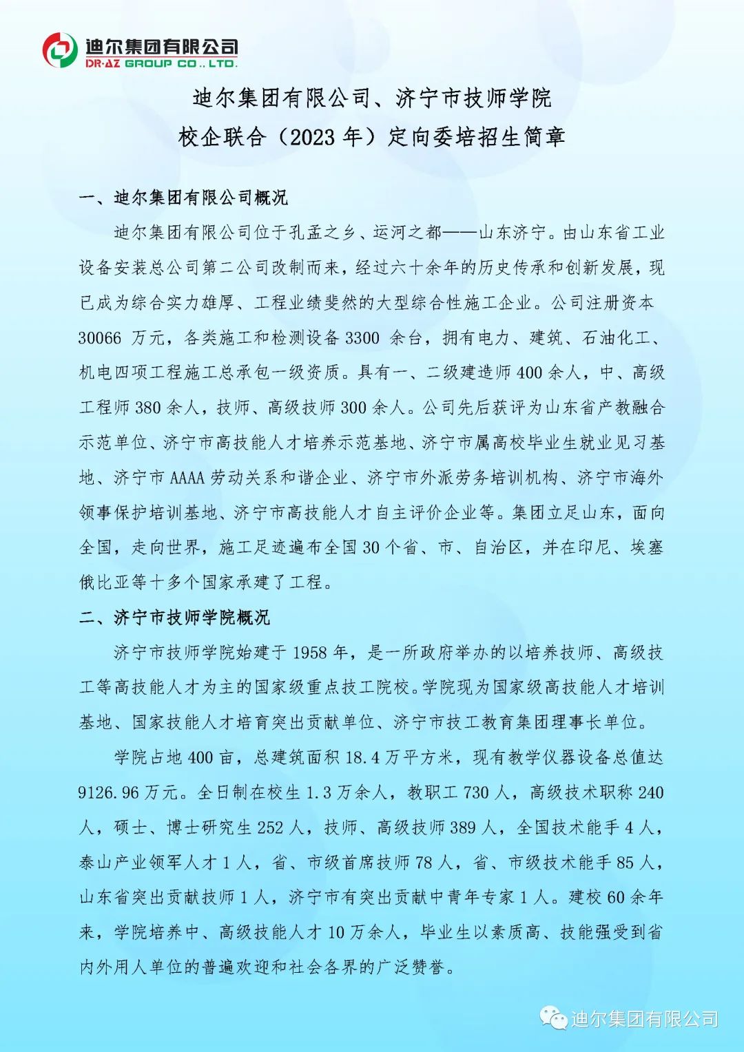 迪爾集團有限公司、濟寧市技師學(xué)院校企聯(lián)合(2023年)定向委培招生簡(jiǎn)章