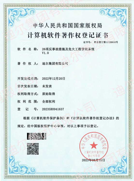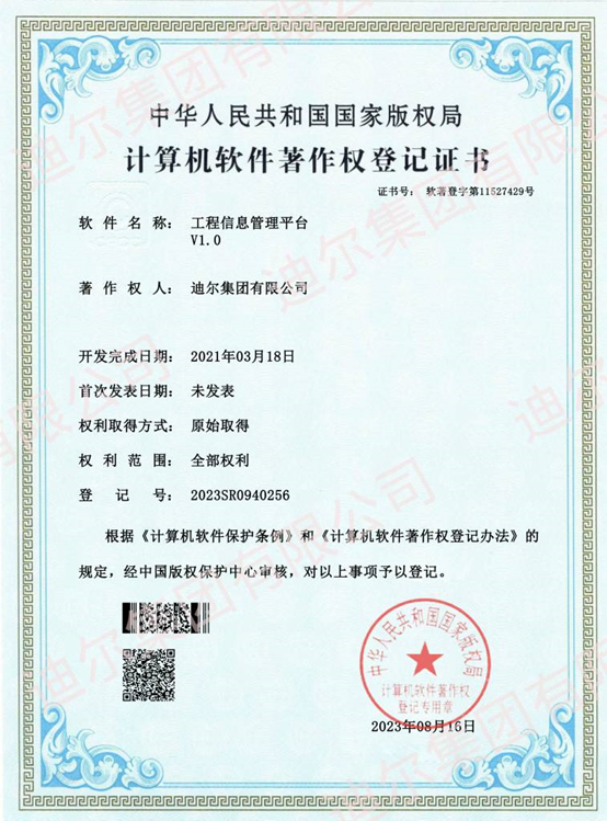 2023年9月15日,公司自主設計開(kāi)發(fā)并實(shí)施應用的五個(gè)信息化管理系統:綜合管理平臺、項目預算管理系統、物資管理系統、工程信息管理平臺、反事故措施及危大工程管理系統,均獲批國家版權局計算機軟件著(zhù)作權。