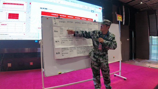 接下來(lái),王克導師結合分析知名企業(yè)成功案例,提綱挈領(lǐng),拋磚引玉,對學(xué)員們的認知、心智以開(kāi)悟啟迪,各個(gè)連隊針對研討營(yíng)提出的“形勢研判”“價(jià)值定位”“業(yè)務(wù)鋪排”“模式設計”“系統行動(dòng)”“資能配置”“企業(yè)管控”等七大課題通過(guò)研討集思廣益,用心作業(yè),然后形成報告,進(jìn)行展示,以豐富多彩的形式展開(kāi)競賽。每位學(xué)員在研討中不再墨守成規、因循守舊,而是放開(kāi)思路、創(chuàng )新思維,不斷突破自我認知邊界,用全新的視角去看待問(wèn)題,解決問(wèn)題,同時(shí)與隊友密切配合、相互補充,最終依靠團隊的力量,攻克一個(gè)接一個(gè)看似艱巨的課題。每一次研討都是一次思想碰撞,每一次碰撞都伴隨著(zhù)一次思維重構。尤其在文化活動(dòng)——“鷹王重生”環(huán)節,面對看似不可能完成的任務(wù),大家一次次克服畏難情緒,經(jīng)受住信念、毅力和體能的多重考驗,即使累得滿(mǎn)頭大汗、胳膊疼麻,也咬牙堅持,自我鼓勁,不言放棄,可謂經(jīng)歷了一場(chǎng)身心的洗禮與覺(jué)醒。面臨生死抉擇,選擇生,就必須拋舊納新,自我蛻變,經(jīng)歷疼痛;企業(yè)重構建歸根結底始于人的重構建,始于個(gè)人的自我打破和蛻變;蛻變是艱難而痛苦的,但只有經(jīng)過(guò)蛻變的陣痛,個(gè)人、團隊乃至企業(yè)才能獲得重生。